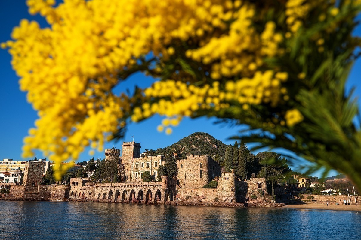 Saint-Raphaël, station classée aux portes du Massif de l’Estérel, séduit par son littoral préservé et ses paysages contrastés. Ses 34 km de côtes mènent du centre-ville aux criques secrètes de Boulouris, jusqu’à la rade d’Agay et la légendaire Île d’Or. La Corniche d’Or, sculptée dans la roche rouge, surplombe des fonds marins d’une transparence exceptionnelle. Mais l’Estérel s’admire aussi côté terre, dans ses vallons verdoyants et ses reliefs volcaniques. En hiver, le mimosa y éclot en une multitude de pompons dorés. Ses fleurs parfumées colorent alors les vallons et contrastent avec l’éclat minéral des roches. Ce spectacle éphémère et lumineux, offre un tableau naturel poétique pour les amoureux de nature et de randonnée.