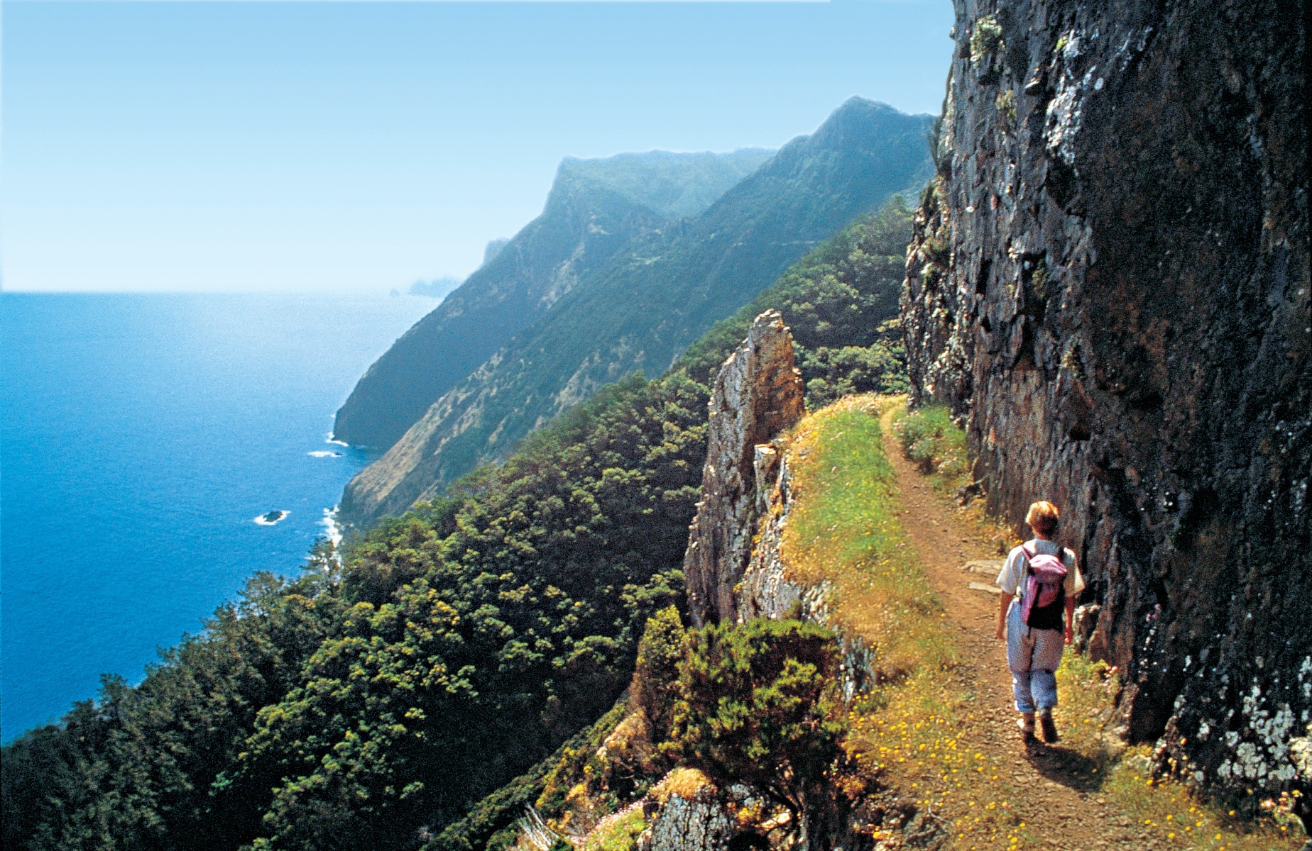 randonneur falaise île