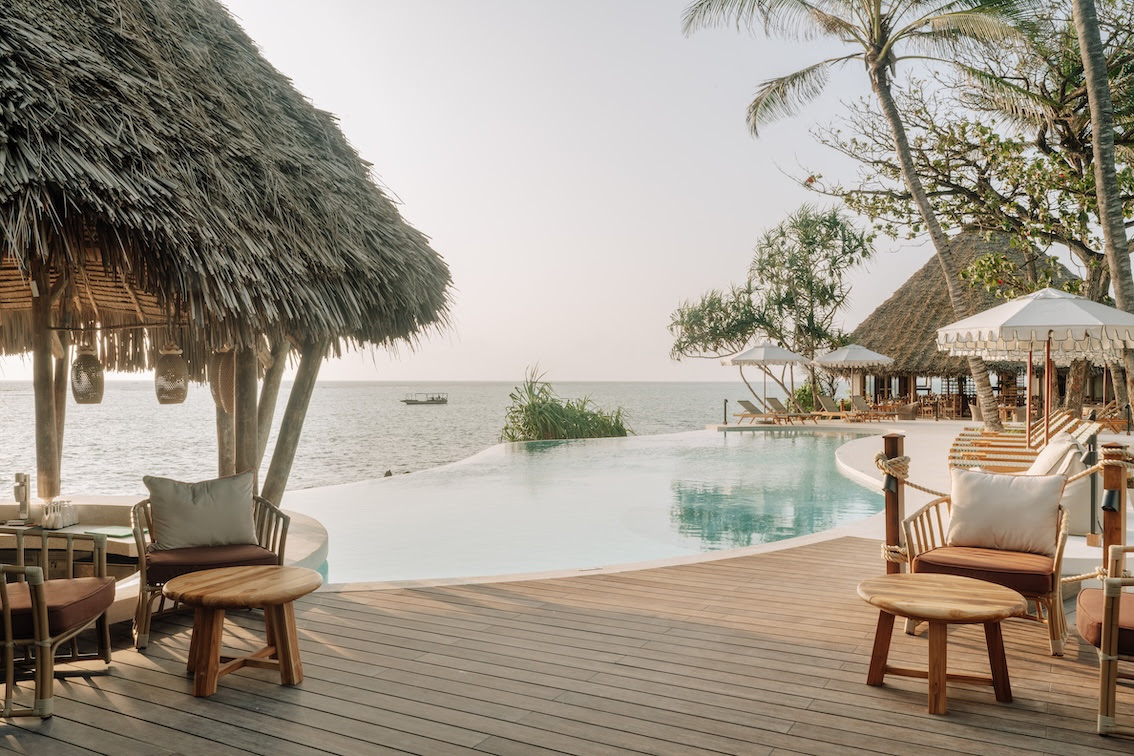 L’hôtel s’étend dans un cadre paisible, entre lagon turquoise et végétation tropicale. Ses 74 villas lumineuses, toutes dotées d’une piscine privée et d’un espace extérieur, sont inspirées de la culture swahilie : murs en corail, toits en makuti, vitraux colorés… Chaque détail traduit le savoir-faire des artisans locaux