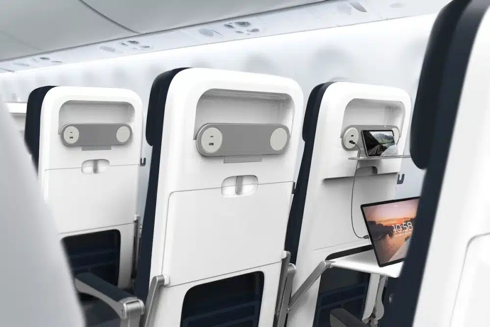 La compagnie poursuit ainsi la montée en gamme et l’homogénéisation de son offre de produits et services sur son réseau court et moyen-courrier. De nouveaux sièges plus confortables et innovants Avec le renouvellement de ses cabines, l’Embraer 190 disposera de 110 nouveaux sièges dans une configuration 2-2. Chaque siège sera habillé de cuir et doté de mousses ergonomiques, pour plus de confort et de durabilité. Inclinable jusqu’à trois pouces, le fauteuil offrira une largeur d’assise de 46 cm, une tablette, des espaces de rangements optimisés, de confortables accoudoirs relevables et un porte-veste. La têtière sera ajustable en hauteur et sur les côtés.