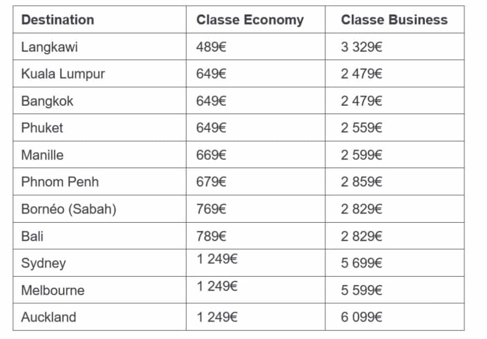 ️ Paris-Kula Lumpur (A/R) à partir de 649€ (Economy) et 2 479€ (Business)