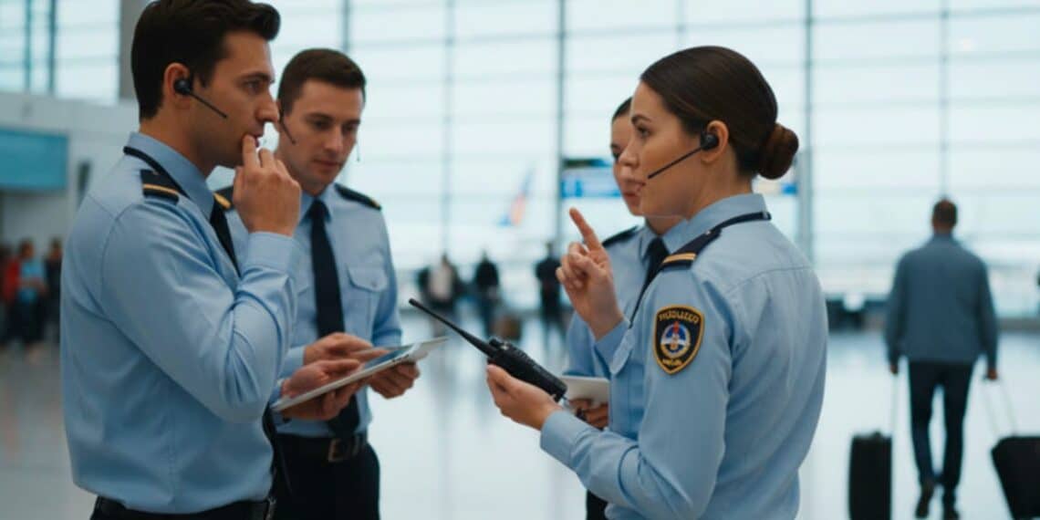 Les agents de sûreté, avec leurs équipements visibles, jouent un rôle essentiel. Ils guident, sécurisent et fluidifient le parcours de chaque voyageur.