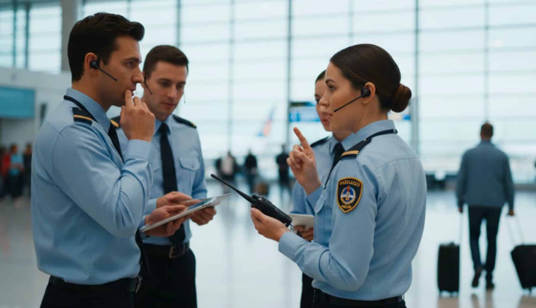 Les équipements visibles des agents de sécurité en aéroport et leur rôle dans le parcours voyageur