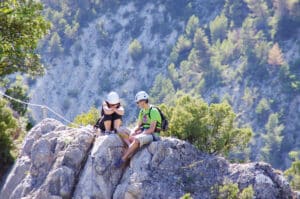 VIA FERRATA : La via ferrata est un itinéraire sportif, situé dans une paroi rocheuse, équipé avec des éléments spécifiques (câbles, échelles, etc) destinés à faciliter la progression et optimiser la sécurité des personnes qui l’utilisent. Parcourir une via ferrata est une activité intermédiaire entre randonnée et escalade. http://fr.wikipedia.org/wiki/Via_ferrata Infotravel vous fait découvrir la Via Ferrata « Les Demoiselles de Castagnet ». Situé dans le Département des Alpes-Maritimes, à 52 km au nord de Nice, ce parcours santé à sensations est accessible à tous. Alors vous, en vacances sur la Côte d’Azur, qui êtes en ce moment bien tranquille sur votre serviette ou dans votre bungalow, venez goûter aux joies de la randonnée et de l’escalade au coeur d’un paysage splendide, et faire votre propre remake de Cliffhanger. Altitude de départ : 520 mètres Altitude d’arrivée : 777 mètres Dénivelé : 257 mètres Longueur : 750 mètres Niveau de Difficulté : Bonne condition physique nécessaire Prix : 3 € / personne CRT Riviera Côte d’Azur: www.cotedazur-tourisme.com Quelques autres site utiles : ☞Le site de la Maison de Pays de Puget Théniers Office de Tourisme intercommunal** Provence Val d’Azur Maison de Pays 06260 Puget-Théniers Tél : 04 93 05 05 05 Fax : 04 93 05 17 22 ☞ Les Chemins de Fer de Provence www.trainprovence.com ☞Train à vapeur ☞Les hébergements Le Château d’Espéron – www.chateau-d-esperon.com La Fuont – http://www.gites-de-france-alpes-maritimes.com/location-cote-azur/location-chambre-hote-2593-VILLARS-SUR-VAR.html ☞Restauration L’Auberge des Pignes Tel : 04 93 03 39 86 49, Route de la Gare – 06710 Villars sur Var ☞Vignoble Le Clos Saint Joseph – Villars sur Var 168 r Savel 06710 VILLARS SUR VAR Tel : 04 93 05 73 29 Agrandir le plan