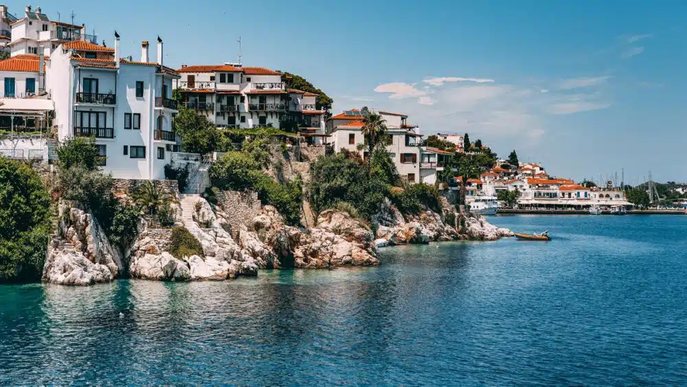 Île montagneuse et couverte de pins Plages sublimes de sable fin aux eaux turquoises Gastronomie authentique Richesse culturelle et patrimoniale Nature exceptionnelle, idéale pour promenades Décor pour plusieurs scènes du film Mama Mia! Proximité à Skopelos, Alonissos et Skyros
