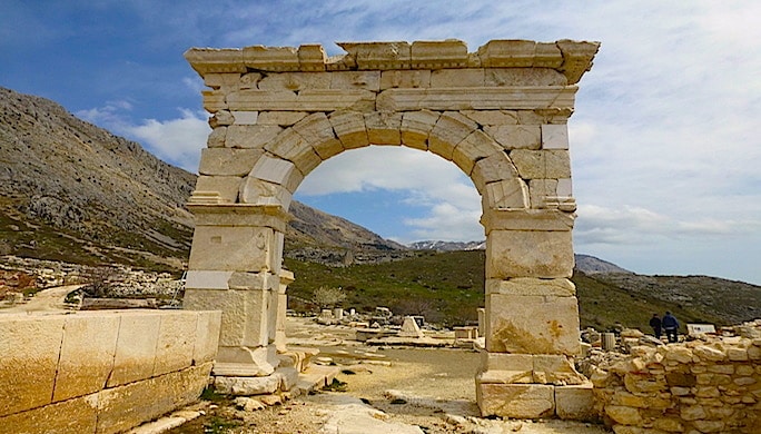 Un peu plus loin, le petit Odéon rappelle les goûts raffinés des Romains pour la poésie et surtout le théâtre, sous le haut patronage du dieu Dionysos, grand amateur de libations et de fêtes. On grimpe à travers les vestiges de colonnes, de portiques, de chapiteaux sculptés déposés en vrac sur le jaune vif des euphorbes en fleurs. Des boutiques de marchands qui s’alignaient sur l’allée principale il ne reste que quelques vestiges éparpillés qui mènent aux lieux emblématiques : la nécropole et ses troglodytes creusés à même la roche, le temple d’Apollon, le vaste théâtre dominant la plaine, la fontaine en marbre qui coule encore et vient on ne sait toujours pas d’où, la belle bibliothèque et ses mosaïques, le quartier des potiers, témoin essentiel de la vie économique florissante de la cité…