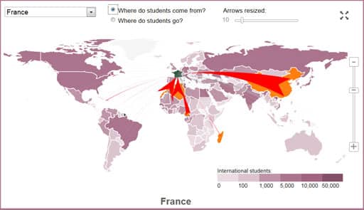 Les pays anglophones représentent 50% des destinations choisies par les étudiants.