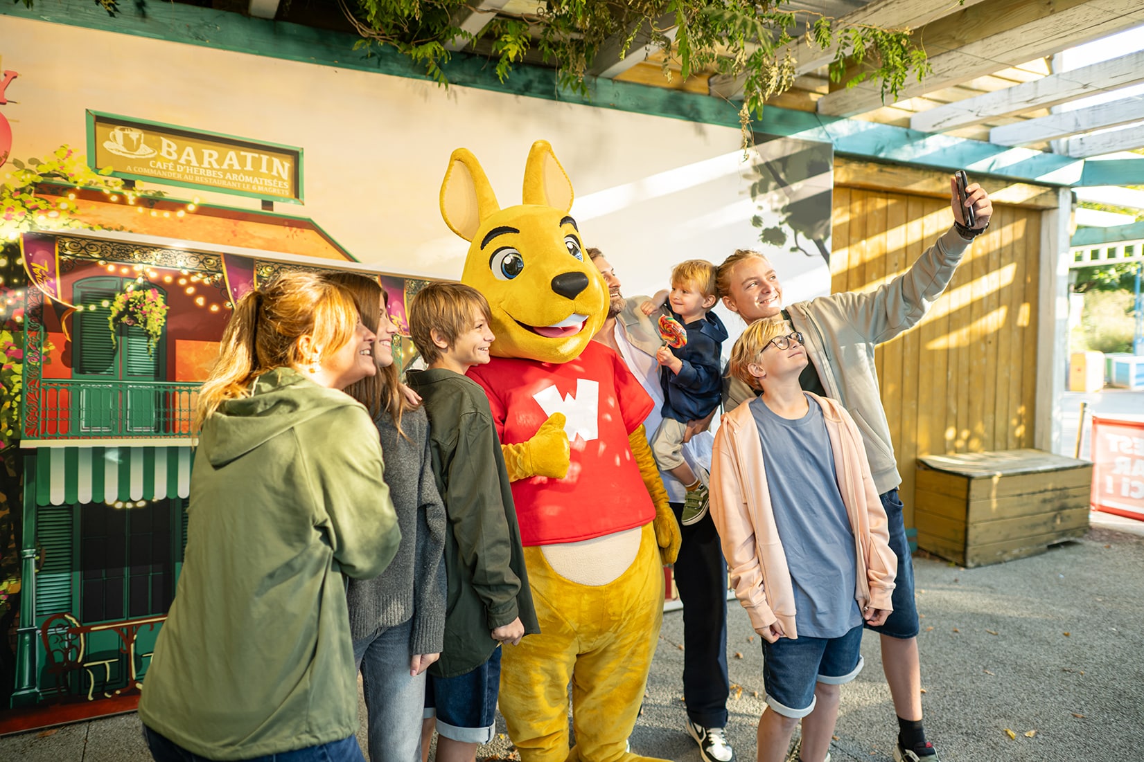 mascotte kangourou famille selfie
